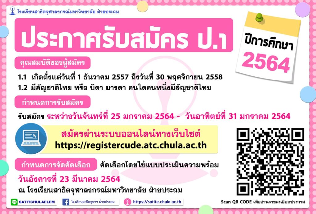 ข่าวโรงเรียนสาธิตจุฬา ฝ่ายประถม รับสมัคร ป.1 ประจำปี 2564 โรงเรียนสาธิตจุฬา ฝ่ายประถม 24 มกราคม เวลา 20:26 น. · แนะนำการใช้งานระบบรับสมัครบุคคลทั่วไปเพื่อคัดเลือกเข้าศึกษาชั้นประถมศึกษาปีที่ 1 โรงเรียนสาธิตจุฬาลงกรณ์มหาวิทยาลัย ฝ่ายประถม ปีการศึกษา 2564 เอกสารแนะนำการใช้งานระบบรับสมัครบุคคลทั่วไปเพื่อคัดเลือกเข้าศึกษาชั้นประถมศึกษาปีที่ 1 โรงเรียนสาธิตจุฬาลงกรณ์มหาวิทยาลัย ฝ่ายประถม ปีการศึกษา 2564 (PDF) https://drive.google.com/…/1kMsgYAEsE9OMcf3VnE6…/view… เว็บไซต์สำหรับการรับสมัคร https://registercude.atc.chula.ac.th/ เปิดรับสมัครตั้งแต่วันที่ 25 มกราคม 2564 เวลา 09:00 น. ถึง วันที่ 31 มกราคม 2564 เวลา 16:00 น. Post Views: 4,333 Tags:#ครูเอ้ติวสอบสาธิต#สอบเข้า ป.1#สาธิตรามคำแหง#สาธิตเกษตร สาธิตเกษตร เลื่อนวันรับใบสมัครและปีนี้ให้สมัครแบบออนไลน์ You Might Also Like 10/04/2021 สาธิตราม บางนา แจ้งเลื่อนวันช่วงสอน summer ค่ะ งานประชาสัมพันธ์สาธิ… 03/04/2021 วันนี้ประกาศผลสอบสาธิตเกษตร ลูกศิษย์ครูเอ้สอบติดหลายคน วันนี้ประกาศผลสอบสาธ… 30/03/2021 วันนี้ประกาศผลสอบสาธิตจุฬา ครูเอ้ได้ข่าวดีจากลูกศิษย์คนเก่ง “น้องดีดี” วันนี้ประกาศผลสอบสาธ…